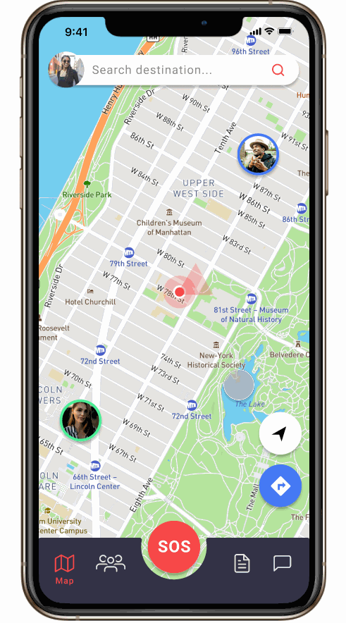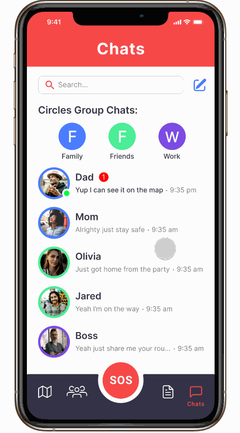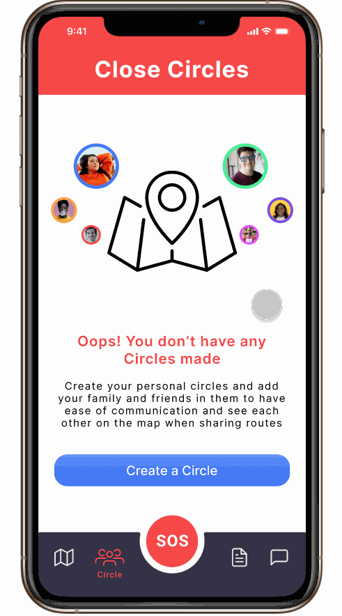 Here the user can communicate with their Circle or Members of their circle as they are on their way to their destination. So if they share their route with their Circle or Member they can check in with the user to make sure they are safe.