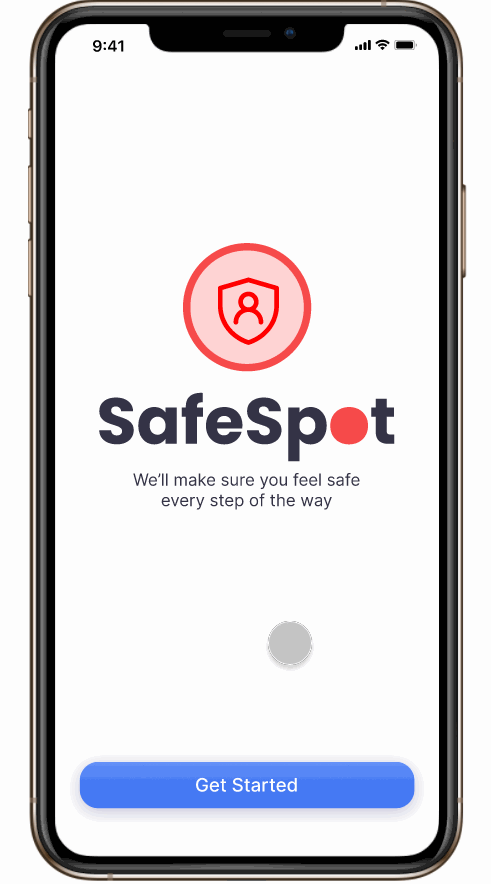 On the map, if a Circle member shared their route with the user they can see where that member is going and their current location. The user can search their destination, verify it, select their mode of transportation, share their route with their circle, and follow the directions the app gives them. If they believe they are in danger they can tap and hold on to the SOS button for help. A 10-second countdown begins, prompting the user to enter their PIN to cancel the alarm if a false alarm. If 10 seconds have passed, emergency services and Circle members are contacted and shown the user’s current location. If the user would like to find a safe spot to go to they can tap on a Safe Spot and get directions to that location.