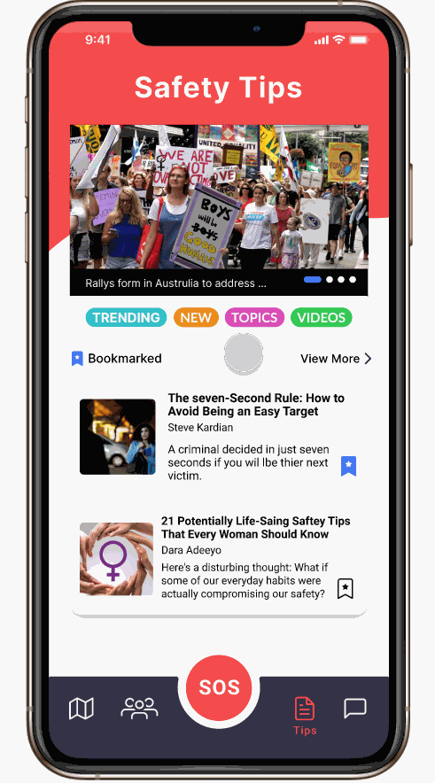 Here the user can stay updated and educate themselves further with how to stay safe and better protect themselves. They can see the latest safety trends, new safety tips, videos, etc to prevent or prepare for the issues they may face to the best of their abilities.